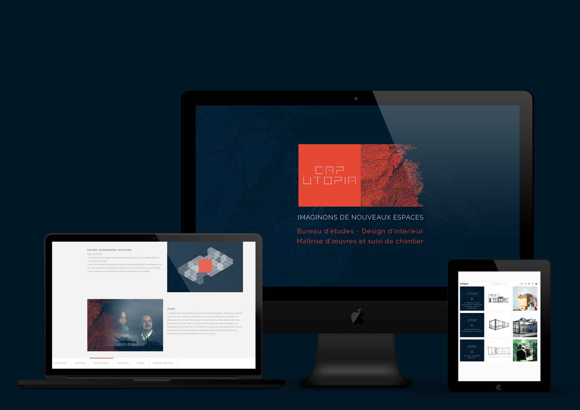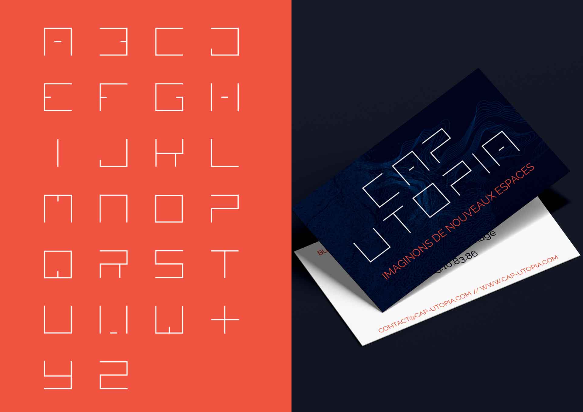 Conception et réalisation de l’univers graphique de CAP UTOPIA, bureau d’études, design d’intérieur, maîtrise d’œuvres. Création du logotype et de la charte graphique, ainsi que des différents supports de communication. Création de la typographie « CAP ».